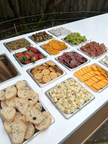 Up to 5 hours of service. Includes three types of cheeses, two types of meats, crackers, grapes, berries, nuts, olives, something sweet, and more. Includes small wooden boards, bartender, shopping, and setup/breakdown. Discounted pricing available when paired with a bar package.